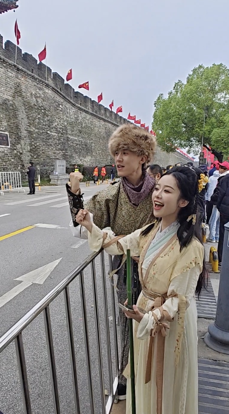 10月19日的襄阳马拉松上,演员们扮成郭靖、黄蓉为运动员加油。 2025年襄阳马拉松将结合金庸小说元素,打造沉浸式赛事体验,主题为“侠义襄阳”。黄蓉、郭靖等经典人物深入参与赛事推广、文化旅游推广。 (湖北日报记者 柯浩 供图)