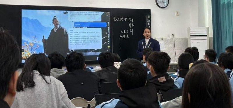 语文老师王爱珠给一班新生讲授“升序”。通过智慧课堂,教师可以在入门阶段触发“全班联动”,复习文学知识,引导学生学习、讨论答案。这与传统的教学方法有很大不同。与此同时,老师在课堂上启动“讨论”活动,全班同学通过智能平板发表意见。通过“词云”展示主视图,学生的班级生成一目了然。最令人兴奋的是,老师设计的虚拟人际互动情境(杜甫)非常精彩赏心悦目,有效提高了学生学习古诗词的兴趣,拓展了学生“认识人、分析世界”的学科思维。