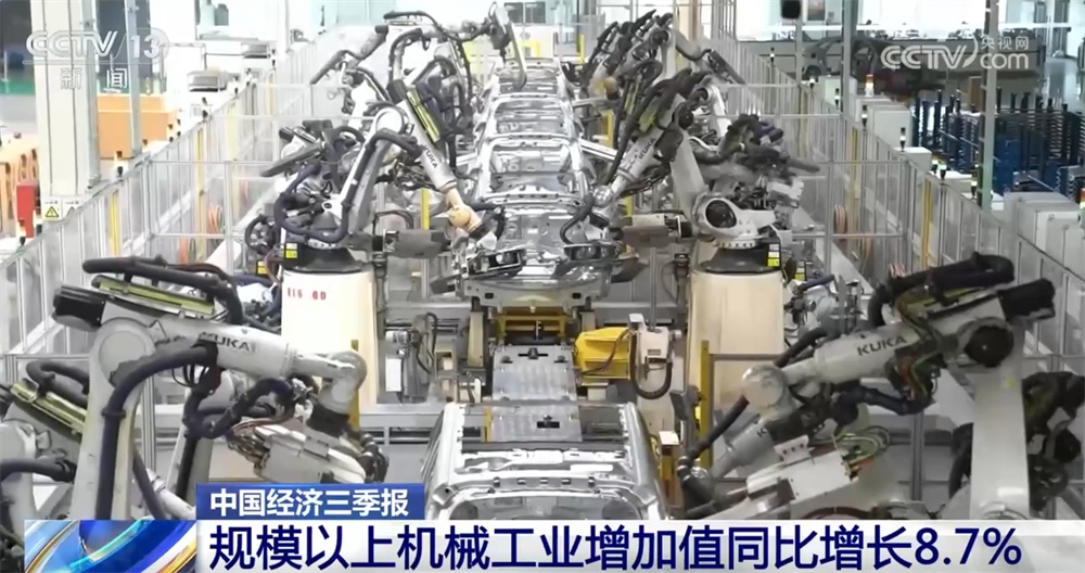 央视网消息:记者24日从中国机械工业联合会获悉,今年前三季度,我国机械工业生产实现快速增长,外贸出口呈现韧性,机械工业经济运行稳中向好。最新数据显示,前三季度,规模以上机械工业增加值同比增长8.7%,超过国内工业2.5个百分点,有力支撑了工业经济平稳运行。分行业看,汽车工业和电机工业增速分别为11.2%和11.1%,占指定工业增速的11%。分产品看,68%的重点监测产品累计产量较上年增长,汽车、太阳能增速r电池和挖掘机产量超过10%。中国机械工业联合会官员表示,随着人工智能与工业融合加速,制造业智能化转型不断深入,我国智能装备领域呈现快速发展态势。前三季度,智能装备制造业增加值同比增长12.2%。数控机床、工业控制系统和3D打印设备产量实现两位数增长。尤其值得关注的是,前9个月工业机器人产量达到59.5万台,超过上年总产量。此外,机械工业创新链与产业链深度衔接,新旧动能有序转换,机械新生产力不断涌现。产业集中度加快,产业成熟度迈出一定步伐。